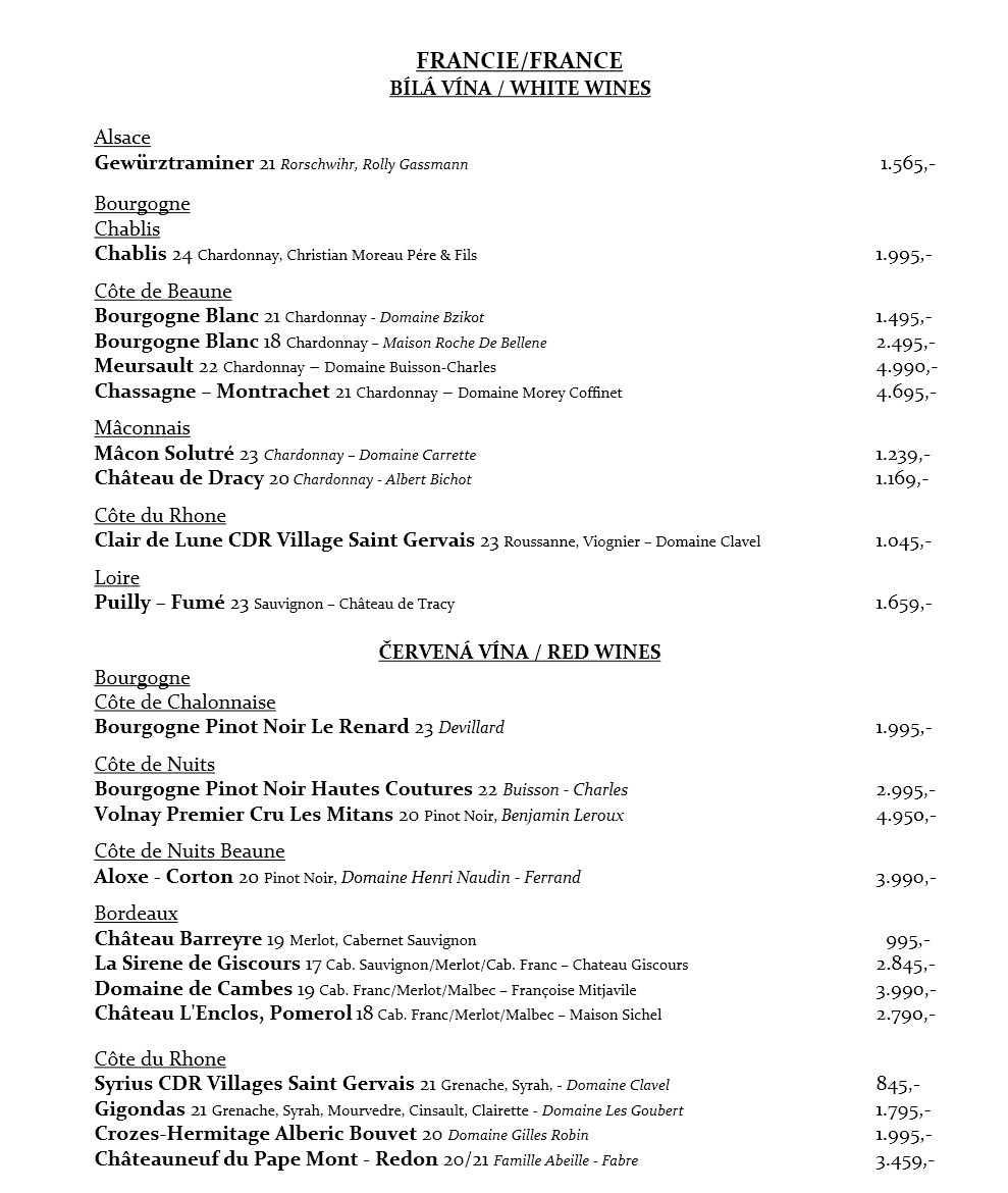Wine list