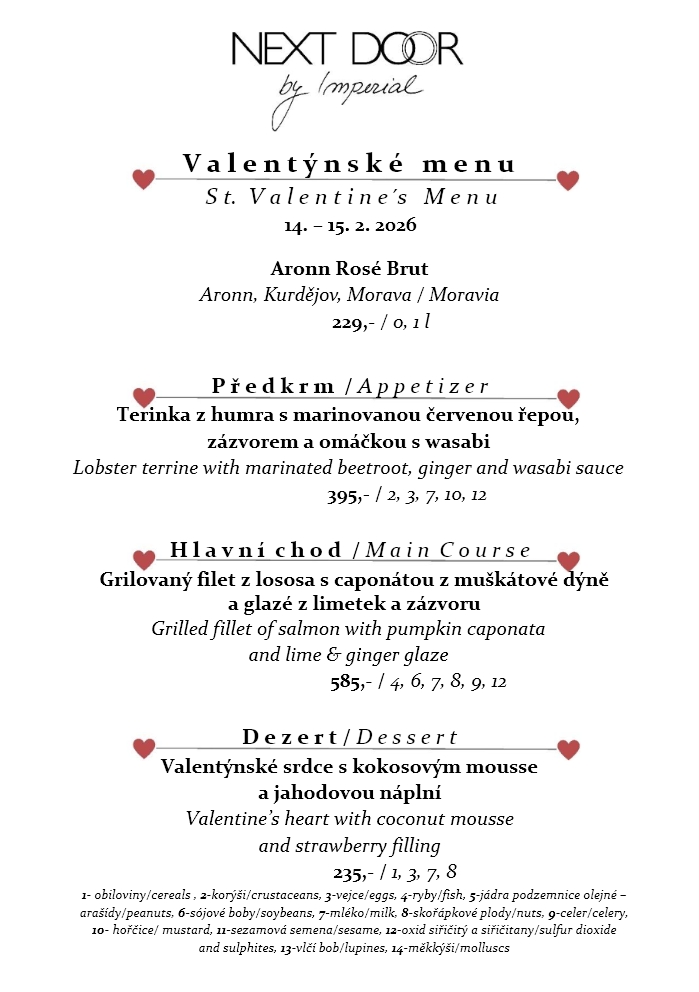 St. Valentine´s menu 14. – 15. 2. 2026