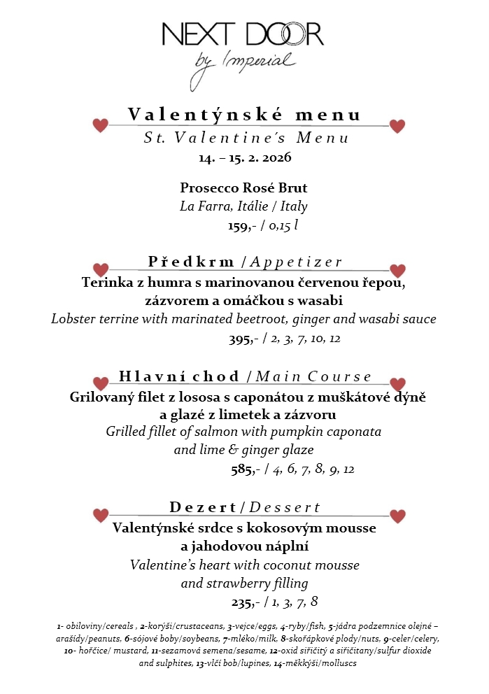 Valentýnské menu 14. – 15. 2. 2026